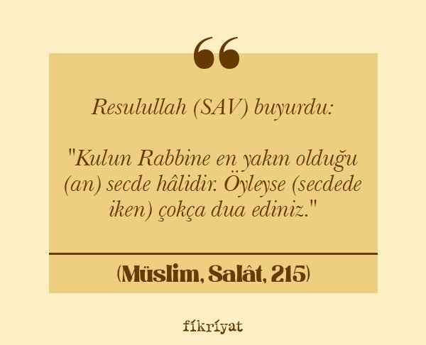 "Kulun Rabbine en yakın olduğu (an) secde hâlidir. Öyleyse (secdede iken) çokça dua ediniz."