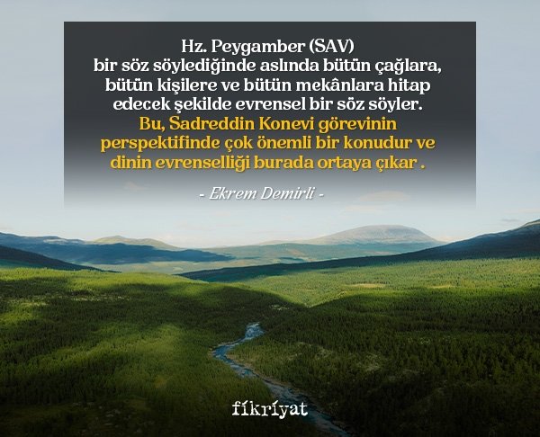 Ancak şimdi ikinciyi unutursak kimle konuştuğumuzu veya kimin hakkında konuştuğumuzu anlamış olmayız. Sadreddin Konevi seçmiş olduğu kırk hadise öyle bir perspektif getiriyor ki peygamberin evrenselliğini biz o zaman anlamış oluyoruz. Hz. Peygamber (SAV) bir söz söylediğinde aslında bütün çağlara, bütün kişilere ve bütün mekânlara hitap edecek şekilde evrensel bir söz söyler. Bu, Sadreddin Konevi görevinin perspektifinde çok önemli bir konudur ve dinin evrenselliği burada ortaya çıkar. Peygamberin evrenselliğini idrak etmezsek dinin evrenselliğini konuşamayız. Bir hadis-i şeriften hareketle Hz. Peygamberin (SAV) evrenselliğini bu hadislere tatbik ederek bir yorum ortaya koyar. Nedir o hadis-i şerif?