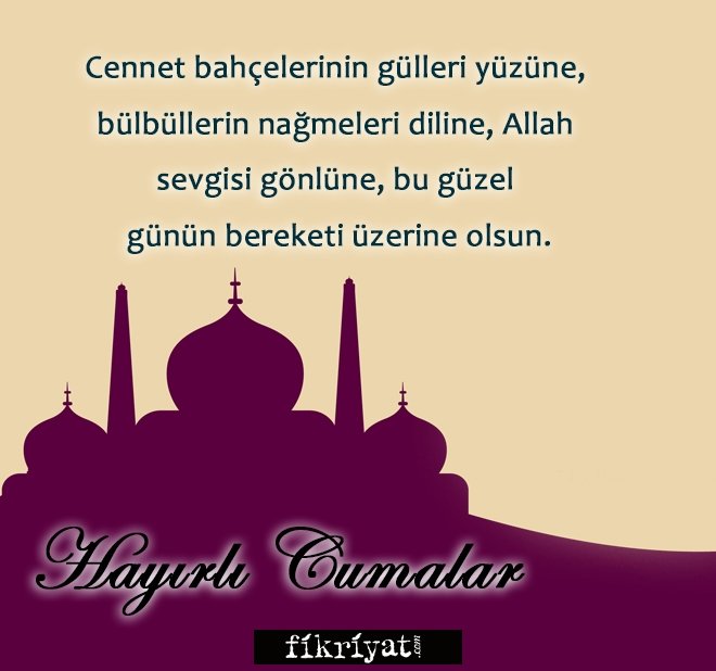 Hayırlı Cumalar! Cuma günü, yüce Allah'ın Kur'an-ı Kerim'de Peygamberimizin (s.a.v) de hadislerinde müjdelediği kutsal bir gündür. Bu mübarek günde hayır dualarda bulunmak müminler için oldukça faziletlidir. Bu fazilete nail olmak isteyen müminler, sevdiklerinin Cumalarını kutlamak ve onlara güzel dileklerde bulunmak için en güzel, dualı, anlamlı, resimli Cuma mesajları gönderirler. SMS olarak gönderebileceğiniz, Facebook, Twitter gibi sosyal medya hesaplarınızda paylaşabileceğiniz en yeni resimli Cuma mesajları…