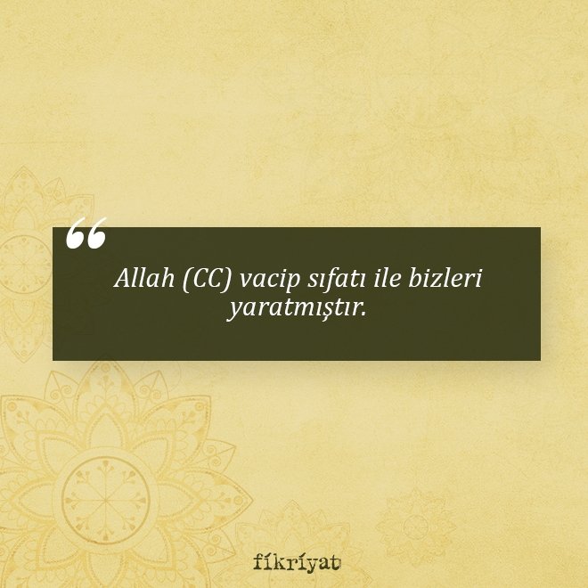 💠 Biz Yüce Allah'ı zatı, hakikati ve mahiyeti ile bilemeyiz. Hatta bu konuda düşünmek bile doğru bulunmaz. Biz Yüce Rabbimizi sıfatları ile bilebiliriz. Allah Teâlâ'da mutlaka bulunması gereken sıfatlara vacib sıfatlar, bulunmaması gereken sıfatlara da "mümteni" sıfatlar denir.