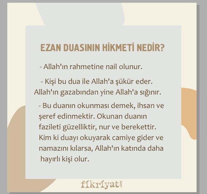 - Ezan duası kötülükten, haramdan korunmak için okunan duadır.