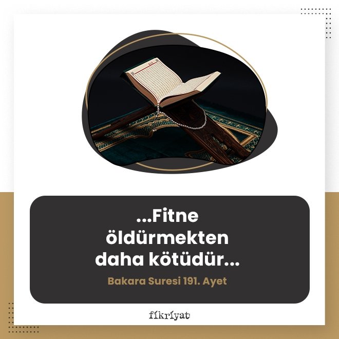 🔸 Bakara suresinin 191. ayetinde geçen fitne kavramı baskı, zulüm ve işkence manalarında kullanılmış, fitne çıkarmanın birini öldürmekten daha büyük bir kötülük olduğu açıkça bildirilmiştir.