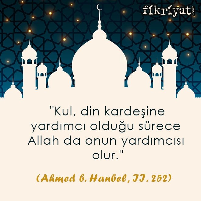 "Kul, din kardeşine yardımcı olduğu sürece Allah da onun yardımcısı olur."