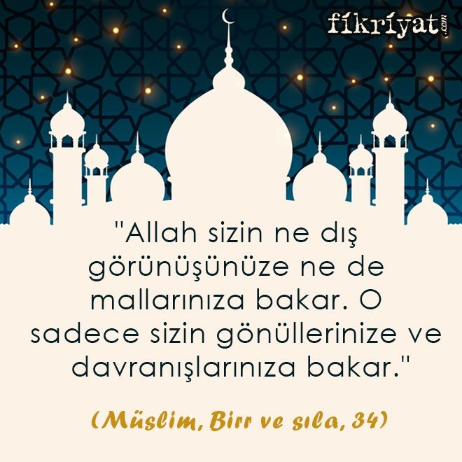 "Allah sizin ne dış görünüşünüze ne de mallarınıza bakar. O sadece sizin gönüllerinize ve davranışlarınıza bakar."