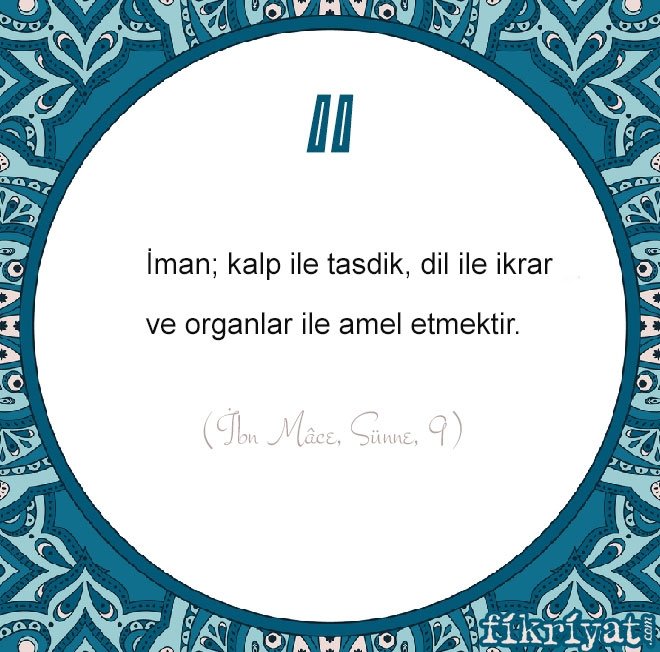 "İman; kalp ile tasdik, dil ile ikrar ve organlar ile amel etmektir."