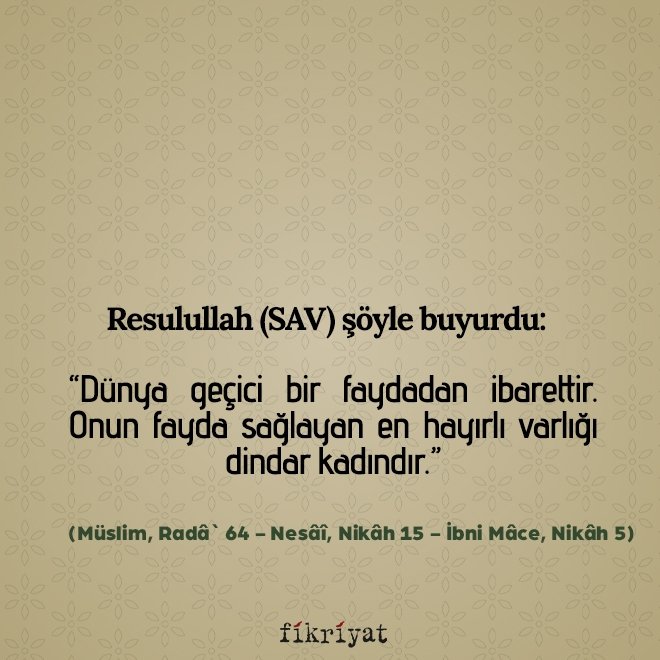 Resulullah (SAV) şöyle buyurdu: