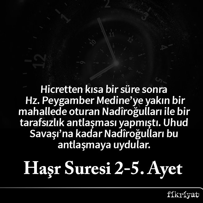 ◼ Hicretten kısa bir süre sonra Hz. Peygamber Medine'ye yakın bir mahallede oturan Nadîroğulları ile bir tarafsızlık antlaşması yapmıştı. Uhud Savaşı'na kadar Nadîroğulları bu antlaşmaya uydular. Hatta müslümanların Bedir zaferine sevindiklerini ve Tevrat'ta anılan âhir zaman peygamberinin Hz. Muhammed olduğuna kanaat getirdiklerini söylemeye başladılar; ama Uhud savaşının müslümanlar aleyhine sonuçlanması üzerine fikir değiştirdiler ve antlaşmayı bozdular. Hicretten kısa bir süre sonra Hz. Peygamber Medine'ye yakın bir mahallede oturan Nadîroğulları ile bir tarafsızlık antlaşması yapmıştı. Uhud Savaşı'na kadar Nadîroğulları bu antlaşmaya uydular. Hatta müslümanların Bedir zaferine sevindiklerini ve Tevrat'ta anılan âhir zaman peygamberinin Hz. Muhammed olduğuna kanaat getirdiklerini söylemeye başladılar; ama Uhud savaşının müslümanlar aleyhine sonuçlanması üzerine fikir değiştirdiler ve antlaşmayı bozdular. Reisleri Kâ'b b. Eşref, yanına bazı adamlarını alarak gizlice Mekke'ye gidip müşriklerin reisi Ebû Süfyân ile bir ittifak antlaşması yaptı.