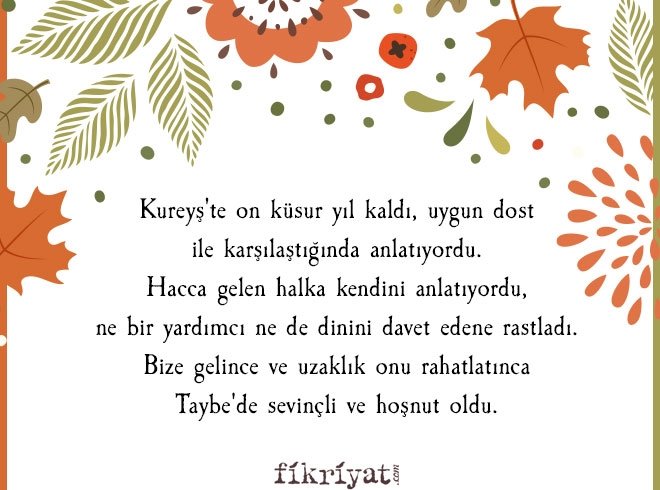 "Kureyş'te on küsur yıl kaldı, uygun dost ile karşılaştığında anlatıyordu