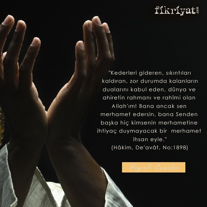 "Kederleri gideren, sıkıntıları kaldıran, zor durumda kalanların dualarını kabul eden, dünya ve ahiretin rahmanı ve rahîmi olan Allah'ım! Bana ancak sen merhamet edersin, bana Senden başka hiç kimsenin merhametine ihtiyaç duymayacak bir merhamet ihsan eyle."