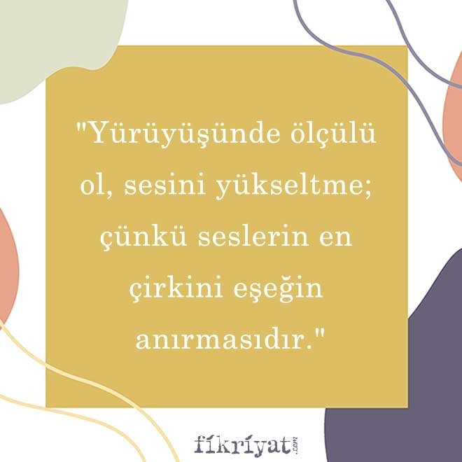 "Yürüyüşünde ölçülü ol, sesini yükseltme; çünkü seslerin en çirkini eşeğin anırmasıdır."