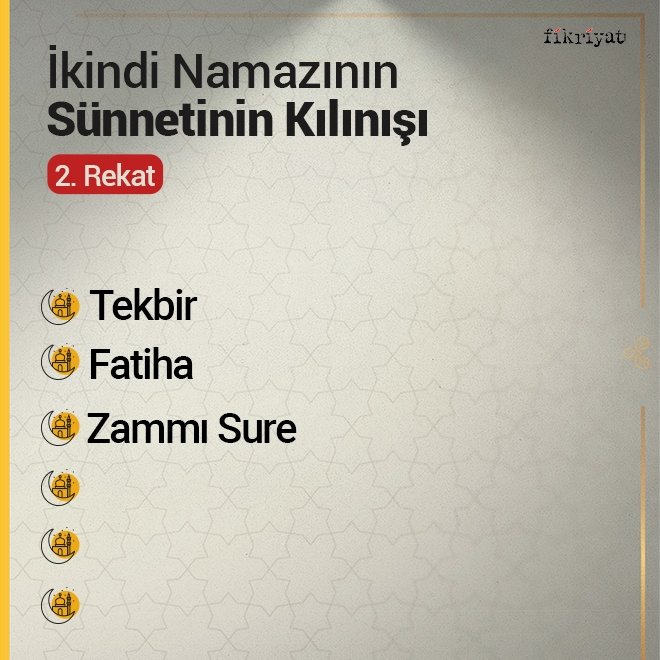 Kulun Rabbine en yakın olduğu anı içeren namaz, günde beş vakit her Müslümana farz kılınmıştır. Dinin ana ibadeti olan namazın tadil-i erkana uyarak kılınması gerekir. Namazı en güzel ikame edebilmek için ise İnanan kimsenin namazı nasıl kılacağını bilmesi gerekir. Günün üçüncü vakti olan ikindi namazı toplam sekiz rekattır. İşte dört rekat sünnet ve dört rekat farzdan oluşan ikindi namazının kılınışı...