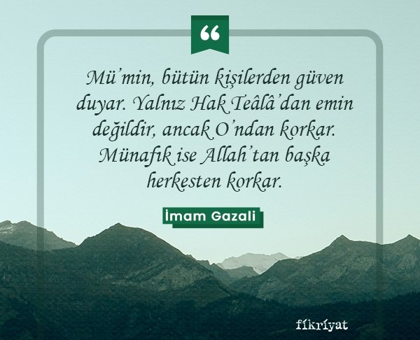 Mü'min, bütün kişilerden güven duyar. Yalnız Hak Teâlâ'dan emin değildir, ancak O'ndan korkar. Münafık ise Allah'tan başka herkesten korkar.