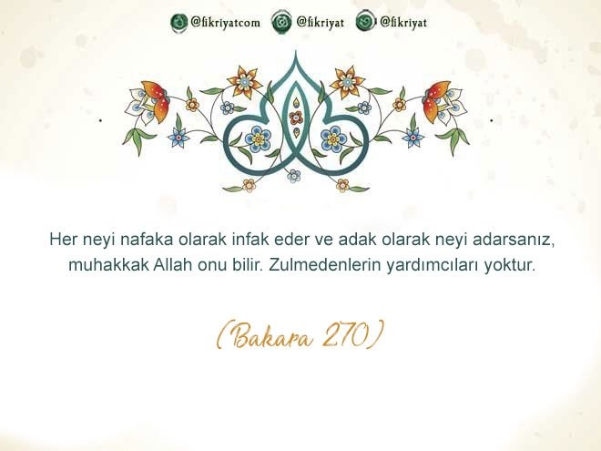 🔸 Her neyi nafaka olarak infak eder ve adak olarak neyi adarsanız, muhakkak Allah onu bilir. Zulmedenlerin yardımcıları yoktur.