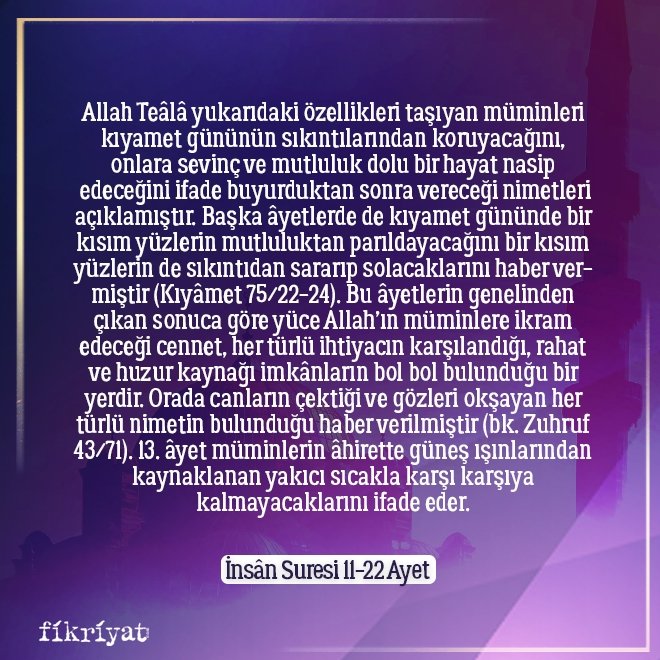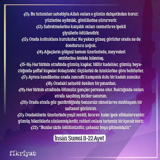 İnsân Suresi 11-22 Ayetleri Tefsiri