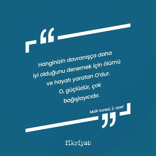 "Hanginizin davranışça daha iyi olduğunu denemek için ölümü ve hayatı yaratan O'dur. O, güçlüdür, çok bağışlayıcıdır."(Mülk suresi, 2. ayet)