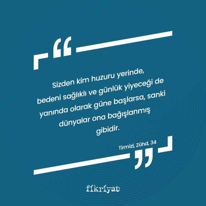 ◾ Sağlıklı geçen her an paha biçilemez bir nimettir. Peygamber Efendimiz hadis-i şeriflerinde şöyle buyurur: "Sizden kim huzuru yerinde, bedeni sağlıklı ve günlük yiyeceği de yanında olarak güne başlarsa, sanki dünyalar ona bağışlanmış gibidir." (Tirmizî, Zühd, 34)