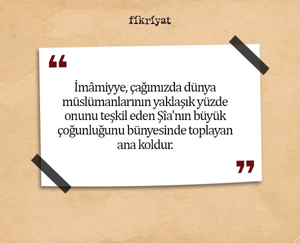 ◾ İmâmiyye, çağımızda dünya müslümanlarının yaklaşık yüzde onunu teşkil eden Şîa'nın büyük çoğunluğunu bünyesinde toplayan ana koldur. Mezhebin siyaset ve imâmet görüşü on iki imam düşüncesi etrafında şekillendiğinden İsnâaşeriyye, akaid ve fıkıhta Ca'fer es-Sâdık'ın görüşlerini esas aldıklarından Ca'feriyye adlarıyla da anılırlar. Hz. Ali ve Hüseyin soyundan gelen on iki imama inanma, hem iman esaslarından birini hem de mezhebin ana doktrinini teşkil eder. Akaid konularında yer yer Mu'tezile mezhebiyle paralellik arzeden görüşlere sahiptir.
