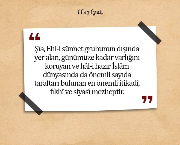◾ Şîa, Ehl-i sünnet grubunun dışında yer alan, günümüze kadar varlığını koruyan ve hâl-i hazır İslâm dünyasında da önemli sayıda taraftarı bulunan en önemli itikadî, fıkhî ve siyasî mezheptir. Sözlükte "taraftar, yardımcı" anlamına gelen Şîa, literatürde Hz. Peygamber'in vefatından sonra Hz. Ali'yi halifeliğe en lâyık kişi olarak gören ve onu ilk meşrû halife kabul eden, vefatından sonra da hilâfete Ali evlâdının getirilmesi gerektiğine inanan toplulukların ortak adı olmuştur. Hz. Osman'ın şehid edilmesini takip eden yıllarda bu misyon ve iddia ile ortaya çıkanların oluşturduğu bir siyasî gruplaşma hareketi olarak doğmuş, hicrî II. yüzyılın ikinci yarısından itibaren de çeşitli fırkalara ayrılan itikadî bir mezhep haline gelmeye başlamıştır.