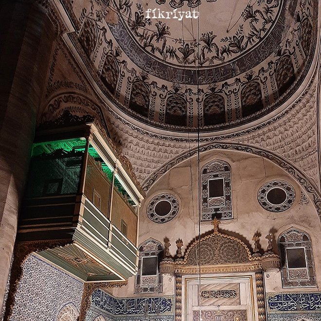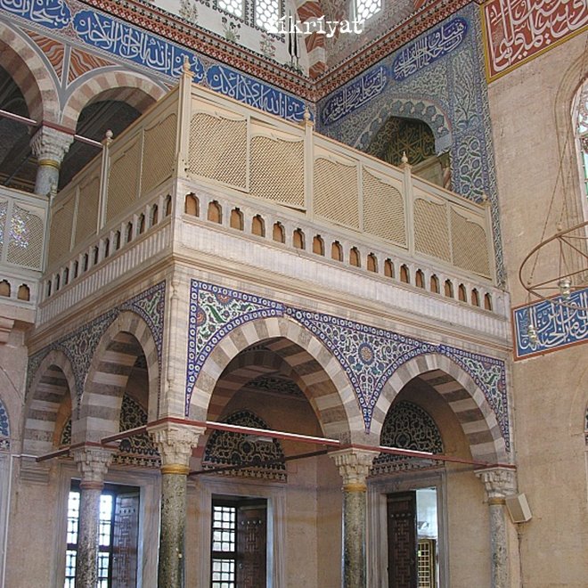 ➡ Osmanlı dönemi camilere eklenen hünkar mahfilleri zamanla belli bir şekil alır buna göre inşa edilen mahfiller istinasız yüksek bir konumda olup çoğunlukla mihrabın sağında veya solunda yer alır. Ayrıca sütunlar üzerine oturtulan lentonlarla veya kemerlerle taşınıp dönemin estetik zevkine göre korkulularla kuşatılır.