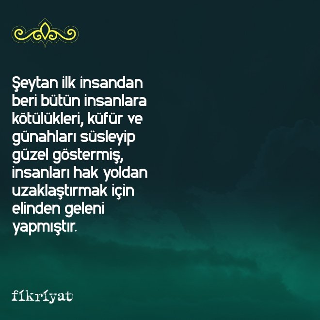 ▪ Şeytan ilk insandan beri bütün insanlara kötülükleri, küfür ve günahları süsleyip güzel göstermiş, insanları hak yoldan uzaklaştırmak için elinden geleni yapmıştır.