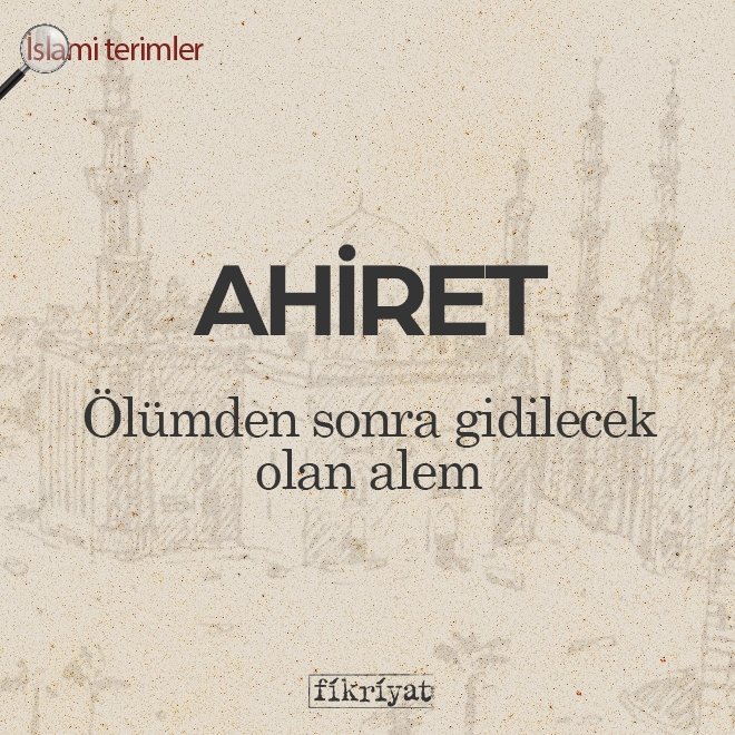 ◾ Arapça kökenli "ahiret" kelimesi, "ölümden sonra gidilecek olan alem" anlamına gelmektedir. İslam'a göre "Müslümanların dünya hayatı bittiğinde gideceği beka aleminin adıdır."