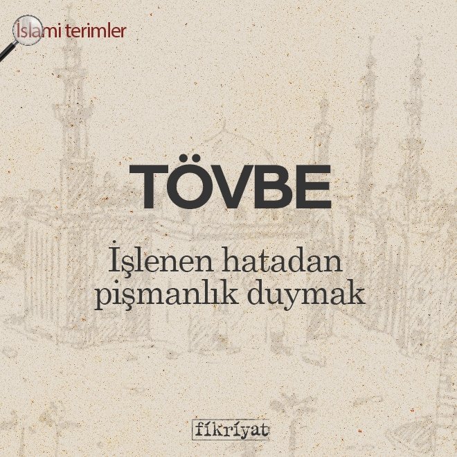 ◾ Müslüman yaşantısının bir parçası olması gereken tövbe kavramı, "bilerek veya bilmeyerek işledikleri haram olan her şeyden sonra yaptıklarından pişmanlık duymaları ve bu hatayı bir daha yapmamaya söz vermeleri" demektir.