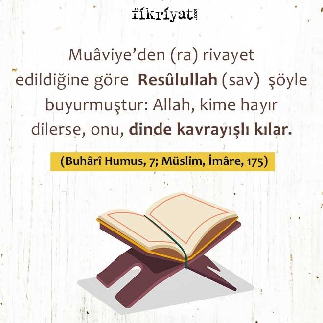 Muâviye'den (ra) rivayet edildiğine göre Resûlullah (sav) şöyle buyurmuştur: Allah, kime hayır dilerse, onu, dinde kavrayışlı kılar.