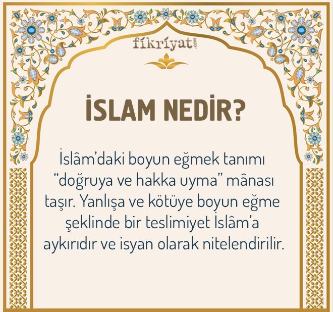 İslâm'daki boyun eğmek tanımı "doğruya ve hakka uyma" mânası taşır. Yanlışa ve kötüye boyun eğme şeklinde bir teslimiyet İslâm'a aykırıdır ve isyan olarak nitelendirilir.