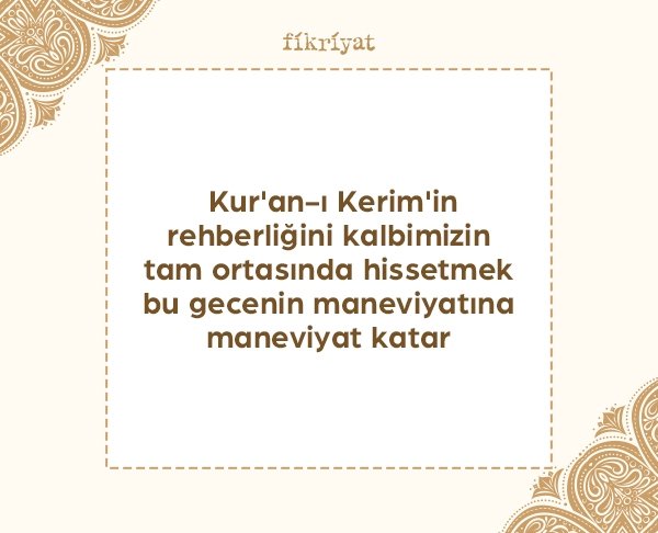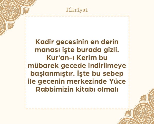 🔹 Kadir gecesinin en derin manası işte burada gizli. Kur'an-ı Kerim bu mübarek gecede indirilmeye başlanmıştır. İşte bu sebep ile gecenin merkezinde Yüce Rabbimizin kitabı olmalı.