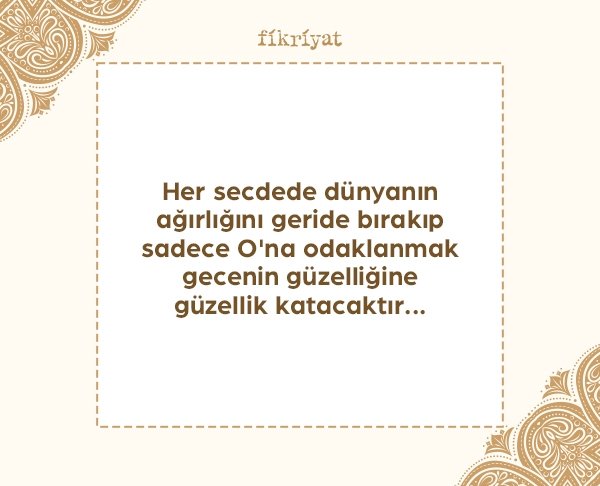 🔹 Her secdede dünyanın ağırlığını geride bırakıp sadece O'na odaklanmak gecenin güzelliğine güzellik katacaktır...