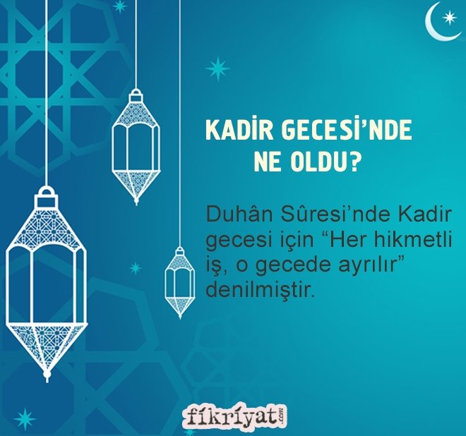 Duhân Sûresi'nde Kadir gecesi için "Her hikmetli iş, o gecede ayrılır" denilmiştir. İbn-i Abbâs'tan rivâyetle de şöyle buyurulmuştur: