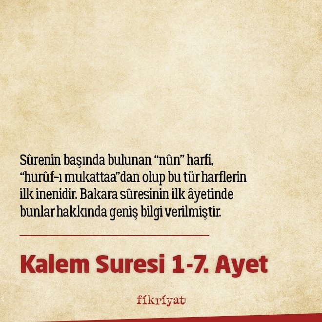 ◾ Sûrenin başında bulunan "nûn" harfi, "hurûf-ı mukattaa"dan olup bu tür harflerin ilk inenidir. Bakara sûresinin ilk âyetinde bunlar hakkında geniş bilgi verilmiştir. Mekke müşrikleri şair, kâhin ve sihirbazların cinlerden bilgi ve ilham aldıklarına inanırlardı. Hz. Peygamber'in de onlar gibi cinlerin etkisi altına girdiğine ve söylediklerinin ona cinler tarafından telkin edildiğine inandıkları için ona şair, kâhin, sihirbaz ve mecnun diyorlardı (krş. Hicr 15/6; Tûr 52/29-30; Müddessir 74/24 ve bu sûrenin 51. âyeti). Bu sebeple Allah Teâlâ kaleme ve kalem ehlinin yazdığı satırlara yemin ederek onun, iddia edildiği gibi mecnun olmadığını, aksine Allah'ın lutfuna yani peygamberlik gibi bir şerefe erdiğini ifade buyurdu (Şevkânî, V, 308).