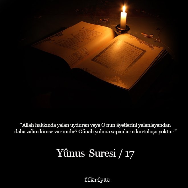 "Allah hakkında yalan uyduran veya O'nun âyetlerini yalanlayandan daha zalim kimse var mıdır? Günah yoluna sapanların kurtuluşu yoktur." (Yûnus suresi 17. ayet)