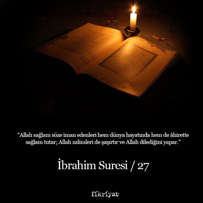 "Allah sağlam söze iman edenleri hem dünya hayatında hem de âhirette sağlam tutar; Allah zalimleri de şaşırtır ve Allah dilediğini yapar." (İbrahim suresi, 27. ayet)