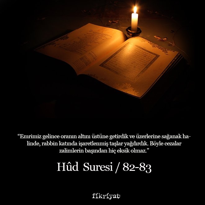 "Emrimiz gelince oranın altını üstüne getirdik ve üzerlerine sağanak halinde, rabbin katında işaretlenmiş taşlar yağdırdık. Böyle cezalar zalimlerin başından hiç eksik olmaz." (Hûd suresi, 82-83. ayetler)