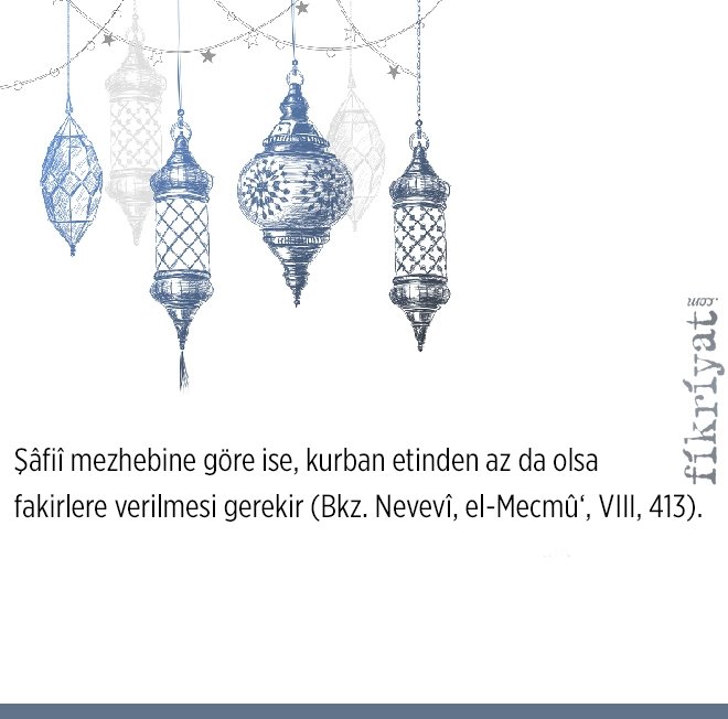 Hz. Peygamber (s.a.s.), kurban etinin üçe taksim edilip, bir bölümünün kurban kesemeyen yoksullara dağıtılmasını, bir bölümünün akraba, tanıdık ve komşularla paylaşılmasını, bir kısmının da evde yenmesini tavsiye etmiştir (Ebû Dâvûd, Dahâyâ, 10).