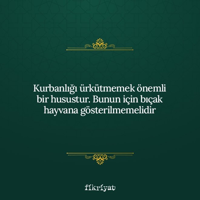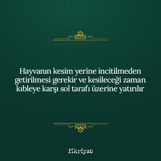 🔸 Kurban kesiminin amacı diğer hayvanların kesiminden farklı olduğu için dikkat edilmesi gereken belirli hususlar bulunur. Kurban ibadetinin kabul olması için bu kurallara riayet etmek gerekir.