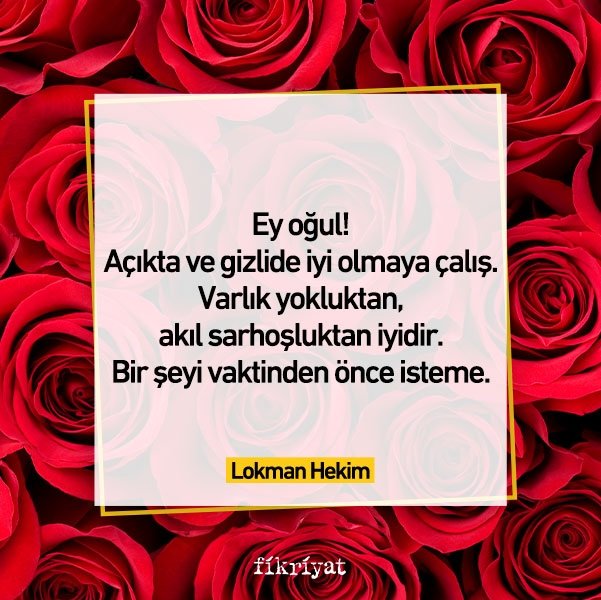 Açıkta ve gizlide iyi olmaya çalış. Varlık yokluktan, akıl sarhoşluktan iyidir. Bir şeyi vaktinden önce isteme.