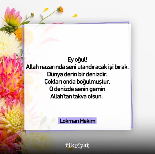 Allah nazarında seni utandıracak işi bırak. Dünya derin bir denizdir. Çokları onda boğulmuştur. O denizde senin gemin Allah'tan takva olsun. Bineğin Allah'a imanın ve yolun Allah'a tevekkül olsun.
