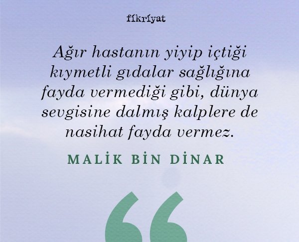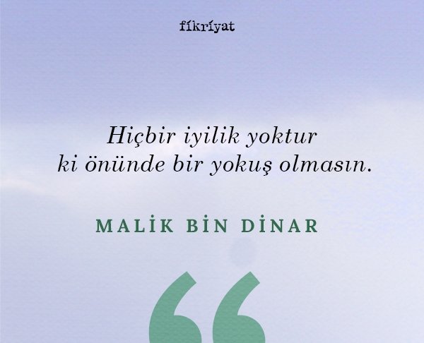 Zühd ve vera mefhumları anıldığında akla gelen ilk alimlerden olan Malik bin Dinar, İslam tarihindeki ilk zahidlerden biri olarak kabul edilir. Bir verrak olan Malik bin Dinar kitap çoğaltma işleriyle uğraşan bir alimdir. Meşhur rivayete göre bir eğlence ortamında ud çalarken içinde ürperti duymuş ve Hasan-ı Basri'nin yanında tevbe ederek Hak Teala'ya yönelmiştir. Hasan-ı Basri'nin takipçisi olan Malik bin Dinar'ın eserlerinden tavsiye ve sözlerin altını çizdik.