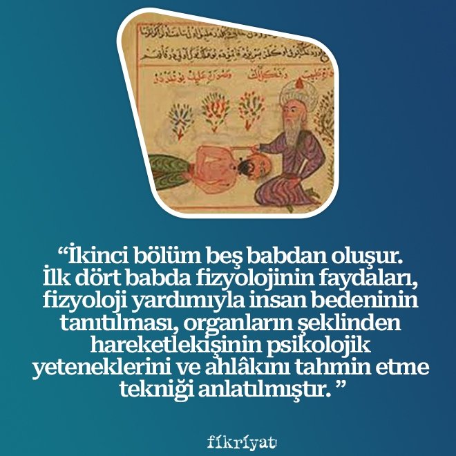 • İkinci bölüm beş babdan oluşur. İlk dört babda fizyolojinin faydaları, fizyoloji yardımıyla insan bedeninin tanıtılması, organların şeklinden hareketle kişinin psikolojik yeteneklerini ve ahlâkını tahmin etme tekniği anlatılmıştır.