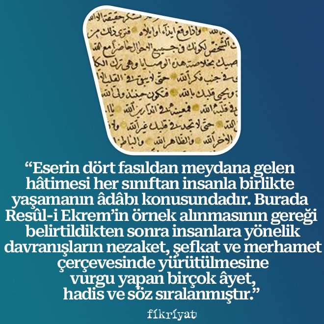 • Burada Resul-i Ekrem'in (SAV) örnek alınmasının gereği belirtildikten sonra insanlara yönelik davranışların nezaket, şefkat ve merhamet çerçevesinde yürütülmesine vurgu yapan birçok ayet, hadis ve söz sıralanmıştır.