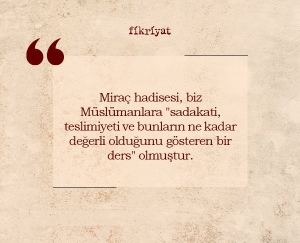 ◾ İşte bundan ötürüdür ki Miraç hadisesi, biz Müslümanlara "sadakati, teslimiyeti ve bunların ne kadar değerli olduğunu gösteren bir ders" olmuş ve günümüze de bu şekilde aktarılmıştır.