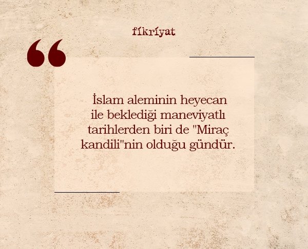 🔸 İslam aleminin heyecan ile beklediği maneviyatlı tarihlerden biri de "Miraç kandili"nin olduğu gündür. 2026 Miraç Kandili, 15 Ocak Perşembe akşamına denk gelmekte.