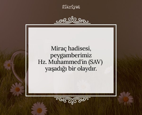 ◻ İsra ve Miraç hadiseleri Peygamberimiz Hz. Muhammed'in (SAV) yaşadığı olağanüstü bir olaydır. Miraç gecesi yaşananlar kulun Hak katına yükselişini ifade eder.