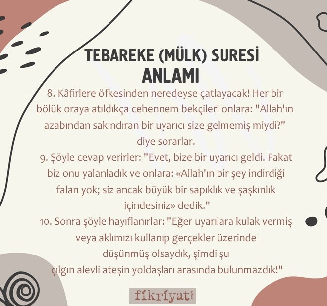 8. Kâfirlere öfkesinden neredeyse çatlayacak! Her bir bölük oraya atıldıkça cehennem bekçileri onlara: "Allah'ın azabından sakındıran bir uyarıcı size gelmemiş miydi?" diye sorarlar.