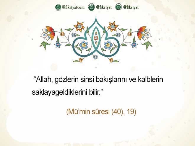 "Allah, gözlerin sinsi bakışlarını ve kalblerin saklaya geldiklerini bilir."
