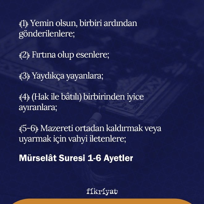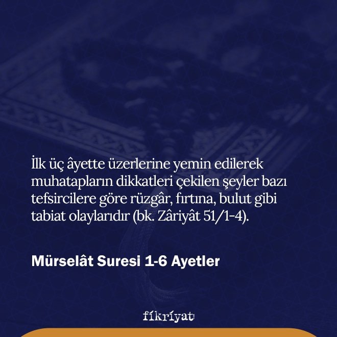 Allah Teala'nın varlığı, birliği, kudreti, melekler, kıyamet günü öldükten sonra dirilme, ahiret hayatı ve orada müminler için hazırlanmış olan nimetler, günahkarlara verilecek cezalar ve gayb alemi gibi inanç konularının merkeze alındığı Mürselat Suresi 50 ayettir ve mushaf sıralamasında yetmiş yedinci suredir. Adını ilk ayetteki gönderilenler anlamına gelen "elMürselat" kelimesinden alan Mürselat Suresi'nin tefsirini hazırladık.