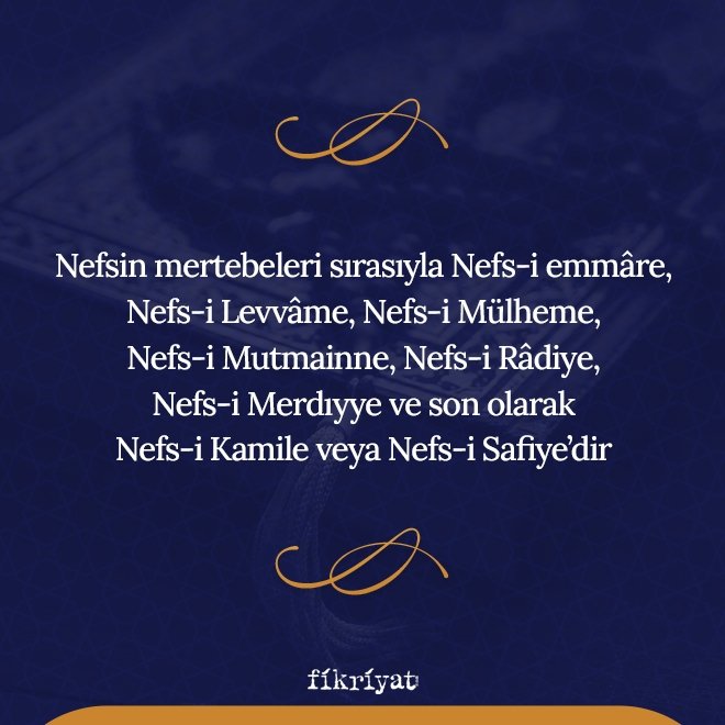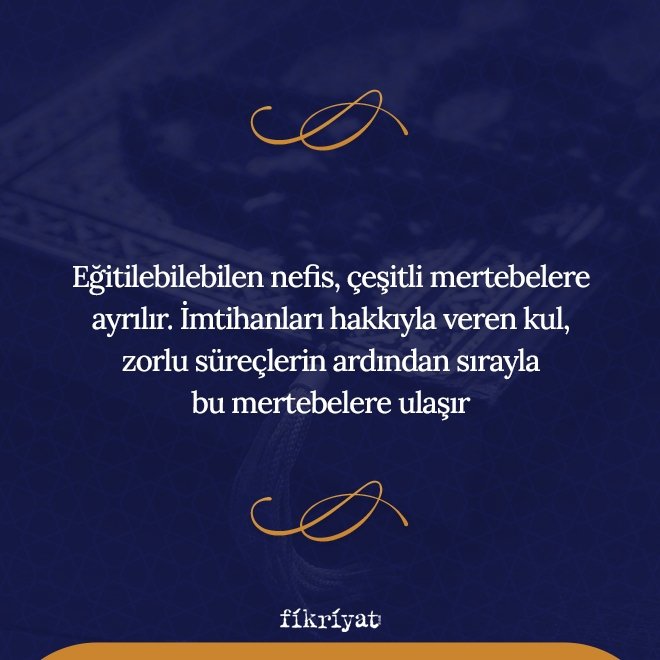 🔹 Eğitilebilen nefis, çeşitli mertebelere ayrılır. İmtihanları hakkıyla veren kul, zorlu süreçlerin ardından sırayla mertebelere ulaşır. Bu yolda oldukça sabırlı ve gayretli olmalı, günahlardan sakınarak güzel ahlak üzere yaşamaya özen göstermelidir.