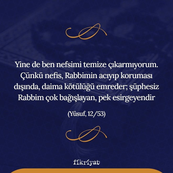 🔹 Hz. Yusuf'un (AS) nefis tanımlaması ise Kur'an-ı Kerim'de şu şekilde geçer: "Yine de ben nefsimi temize çıkarmıyorum. Çünkü nefis, Rabbimin acıyıp koruması dışında, daima kötülüğü emreder; şüphesiz Rabbim çok bağışlayan, pek esirgeyendir." (Yûsuf, 12/53)
